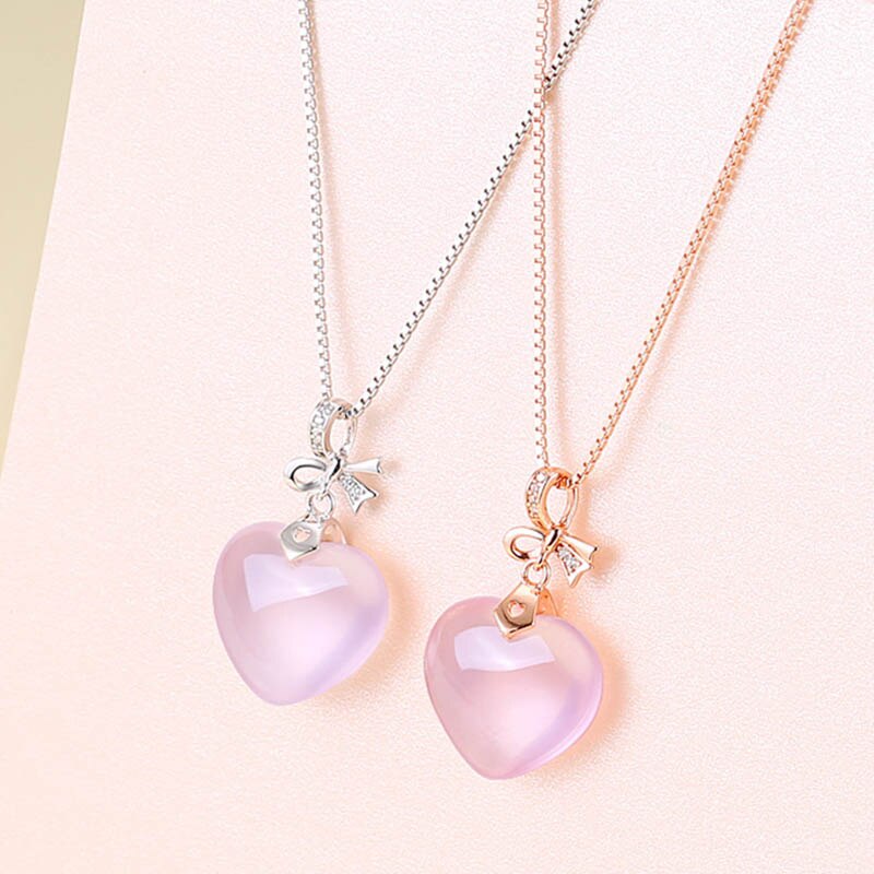 O coração é um símbolo do amor e de tudo o que é belo — como tu. Este colar com pendente em forma de coração de quartzo rosa foi feito para ti.
