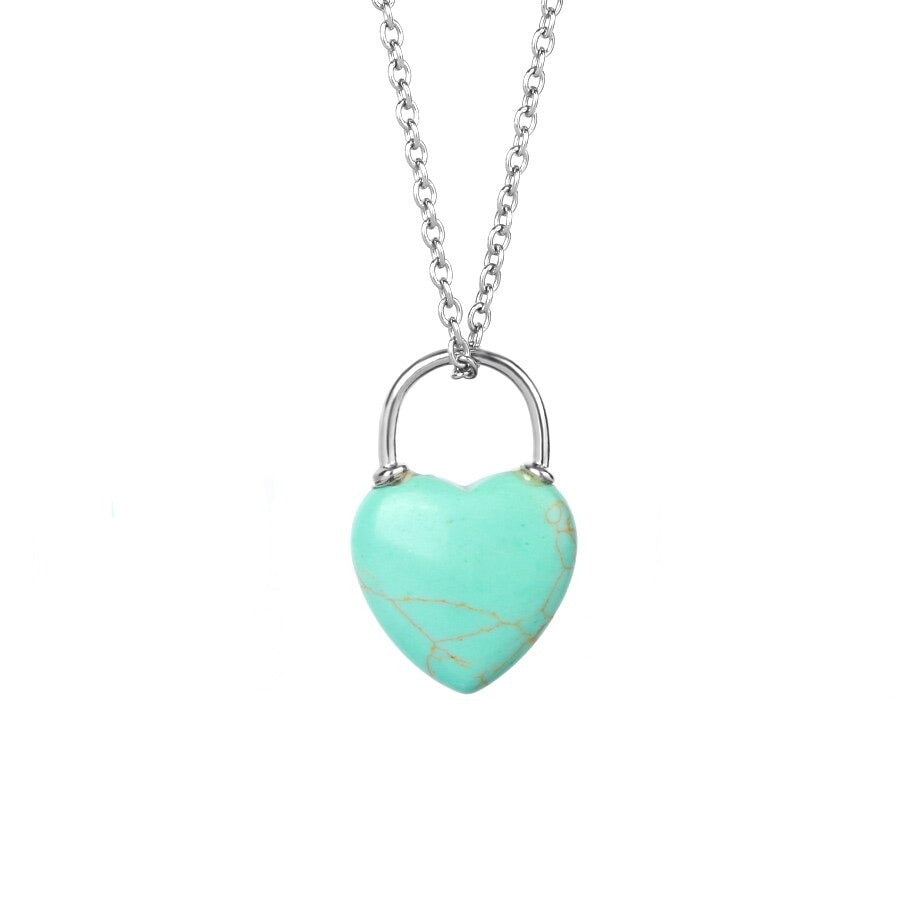 Este colar em forma de coração com pedra turquesa é uma excelente ideia de presente.