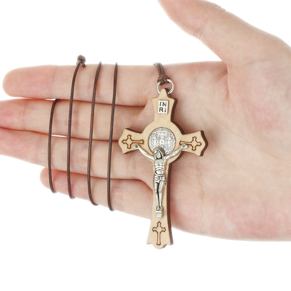 Use este colar de cruz cristã em madeira com orgulho para agradecer a Deus.