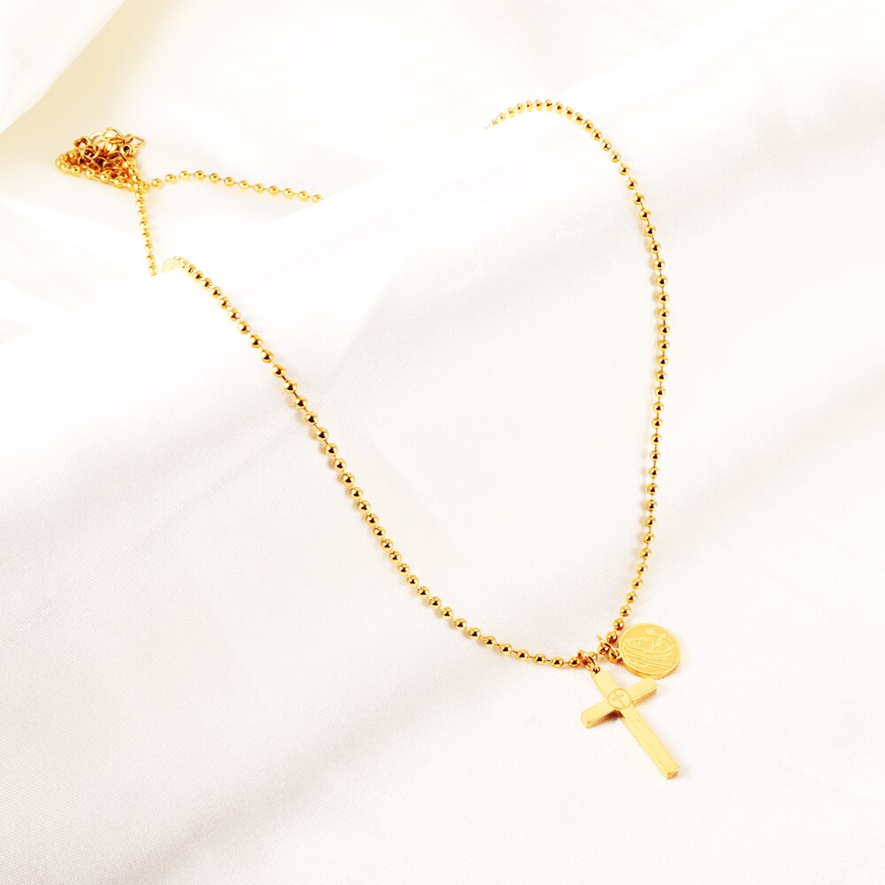 Feito em aço inoxidável de alta qualidade, tanto a corrente como os pendentes, este colar é ideal para expressar a sua fé. Ajustável e suficientemente comprido, pode adaptá-lo facilmente ao seu estilo e gosto. Este colar está disponível em banho de ouro ou de prata.