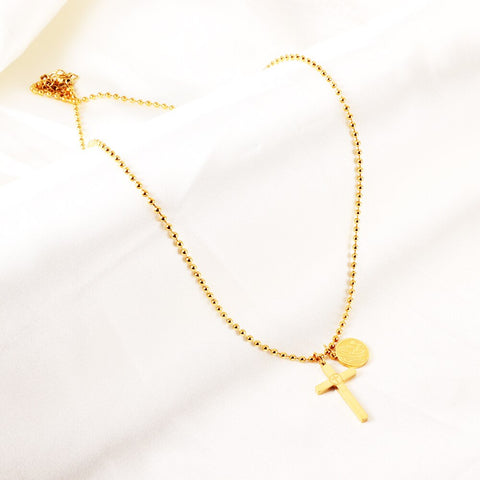Este magnífico colar com um pingente de cruz e medalha é a forma perfeita de se mimar! Esta peça deslumbrante é ideal para adornar o seu pescoço com esperança.