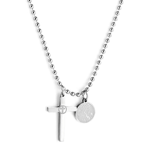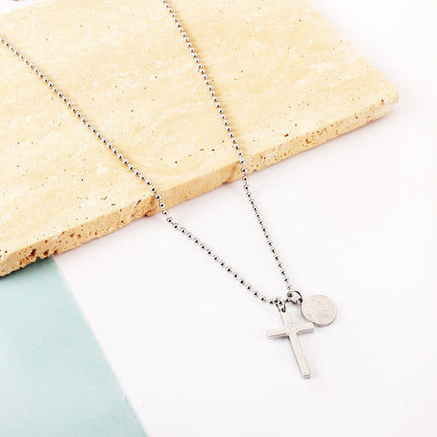 Este colar com cruz e medalha em aço vai certamente agradar!