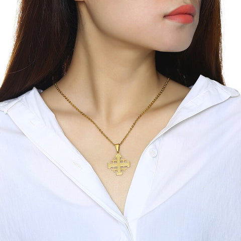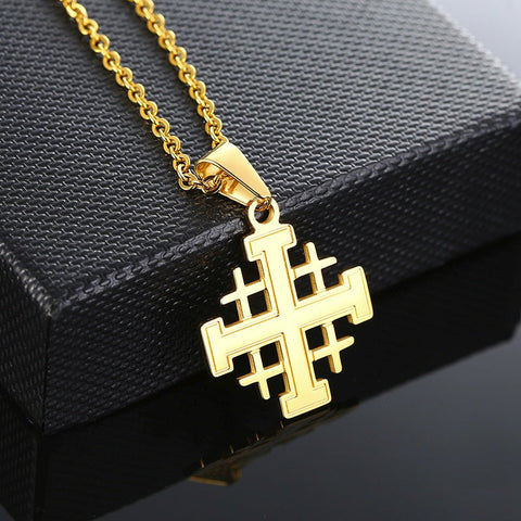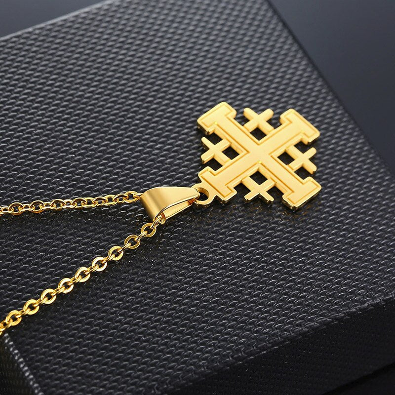 Use a sua fé com orgulho com este magnífico colar com Cruz de Jerusalém.
