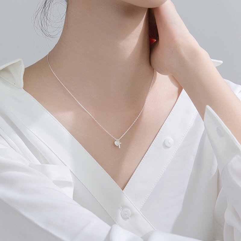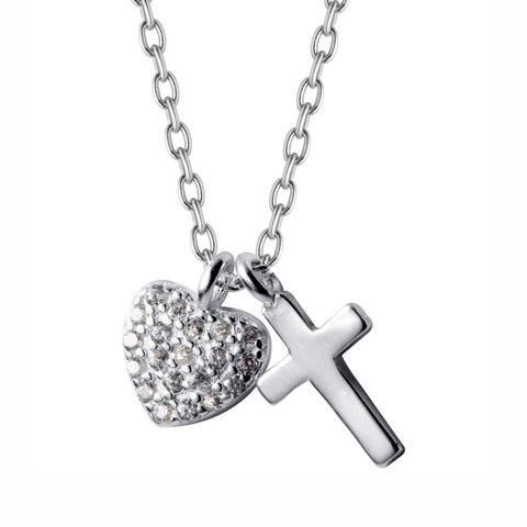 O coração, símbolo universal do amor, e a cruz, símbolo da fé cristã, formam juntos uma dupla harmoniosa que é ao mesmo tempo terna e espiritual. Fabricado em prata S925 de alta qualidade, este colar irradia um brilho delicado que realça a beleza natural de quem o usa. Os pendentes em forma de coração e de cruz são pequenos, oferecendo um toque subtil a esta joia cheia de significado.