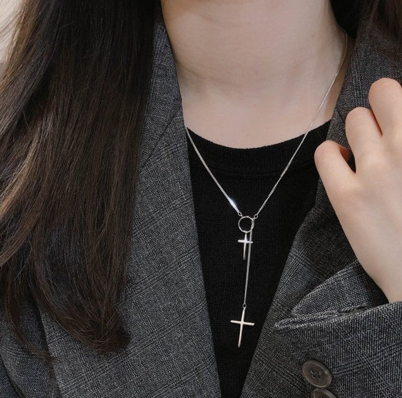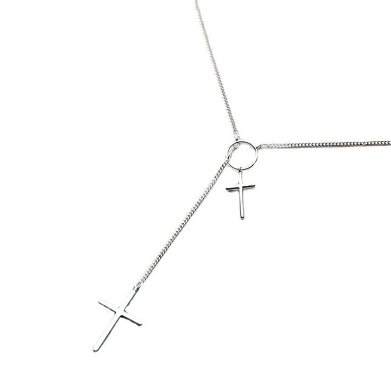 Com esta joia feita em prata, podes vestir-te com elegância e usar o colar com toda a modéstia. Um colar extremamente bonito e original, composto por 2 cruzes feitas de prata S925. Graças à corrente ajustável com comprimento entre 43 e 46,5 cm, podes facilmente adaptá-la à altura que desejares.