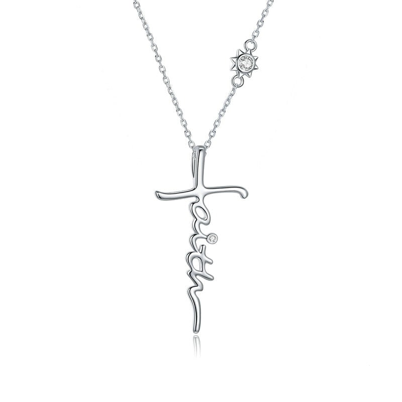 Mostra o teu orgulho na fé com este colar com cruz "Faith".