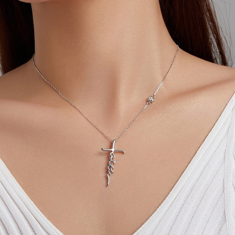 Este colar de cruz original foi desenhado de forma a integrar lindamente a palavra "fé" no seu design. Tornar-se-á um símbolo marcante das tuas crenças!