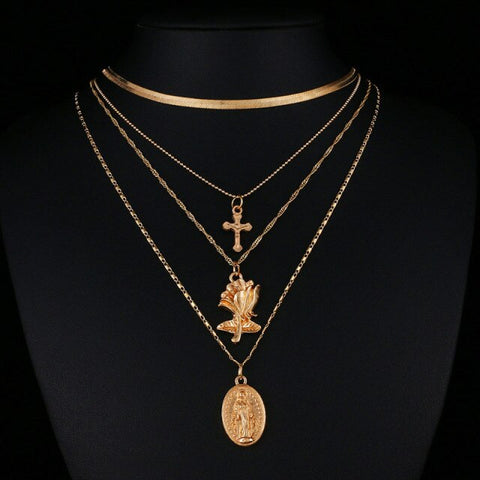 Adoramos oferecer flores às pessoas que amamos: à mãe no Dia da Mãe, à avó no aniversário, à esposa no Dia dos Namorados. Mime-se com este colar deslumbrante, decorado com uma bela flor gravada em dourado ou prateado. O colar tem quatro delicados níveis e pode ser usado por cima da blusa ou junto ao decote.