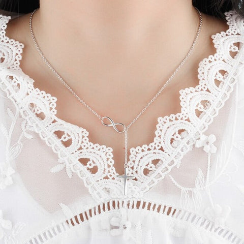 Esta belíssima joia cristã é feita de prata de lei 925. É composta por duas partes: uma cruz no pingente e o símbolo do infinito. Esta joia reflete um significado profundo aos olhos de quem a usa. Por isso, é uma ideia de presente ideal!