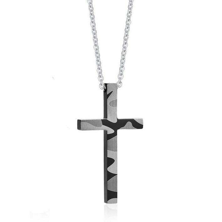 O colar cruz padrão camuflado é a joia ideal para quem procura um estilo diferente e sofisticado. Este colar com pendente em forma de cruz camuflada acrescenta um toque de originalidade ao teu visual do dia a dia.
