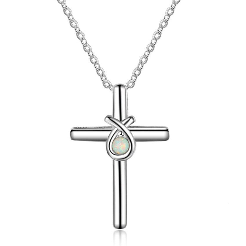 Este colar com pendente em forma de cruz é feito da mais fina prata S925. Uma joia deslumbrante criada pelos nossos parceiros joalheiros, com uma magnífica pedra de opala no centro da cruz e do peixe. Este acessório bonito é uma ideia de presente perfeita para o aniversário de um cristão!
