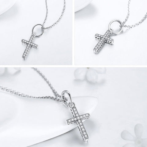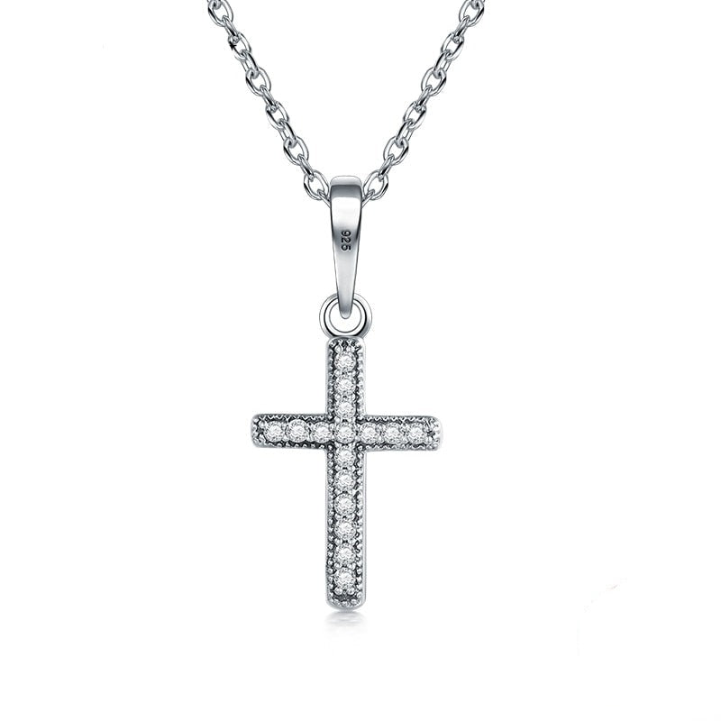 O pendente em forma de cruz mede 2 x 1 cm, um detalhe discreto, mas marcante. Esta joia é feita de prata S925, o que a torna resistente e duradoura — perfeita para uso diário. A prata S925 é também hipoalergénica, sendo ideal para peles sensíveis.