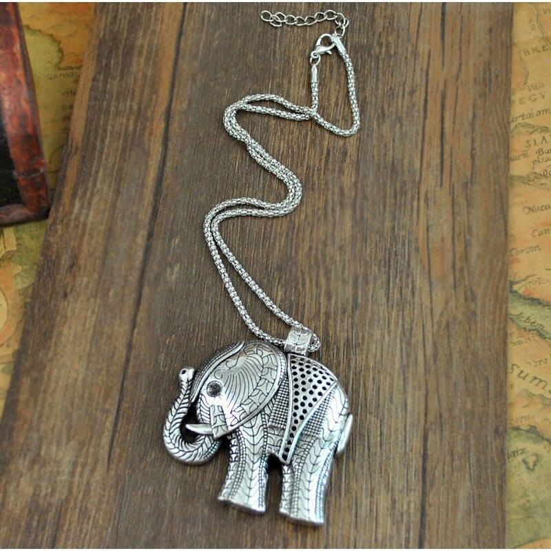 Aqui está um magnífico colar de elefante em liga de zinco, com motivos perfeitamente elaborados num estilo extremamente puro. Um elefante cuidadosamente gravado e um colar de alta qualidade.