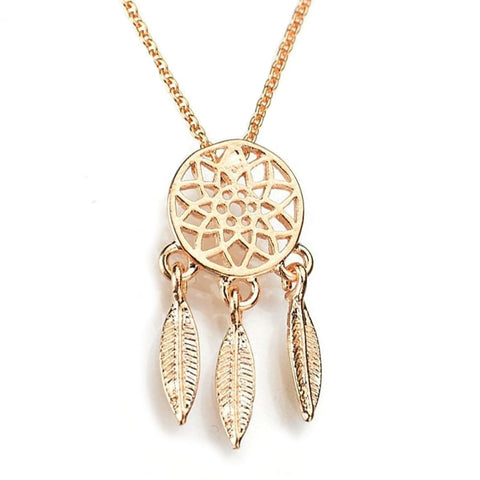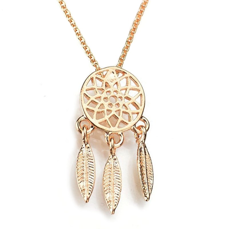 Colar atrativo com apanhador de sonhos dourado e design encantador.