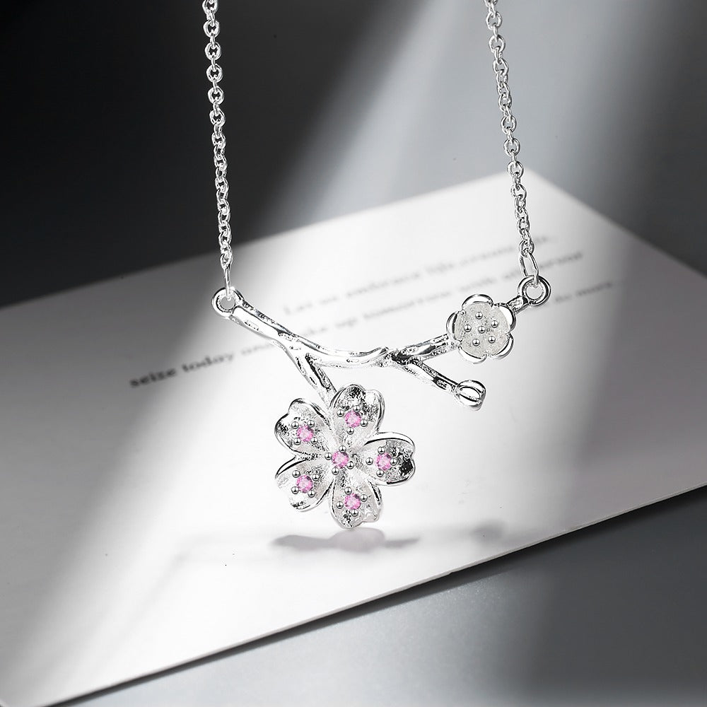 Realce a sua beleza feminina com este lindo colar de flor de cerejeira. Esta joia simbólica representa evolução e renovação, sendo perfeita para se libertar das rotinas habituais.