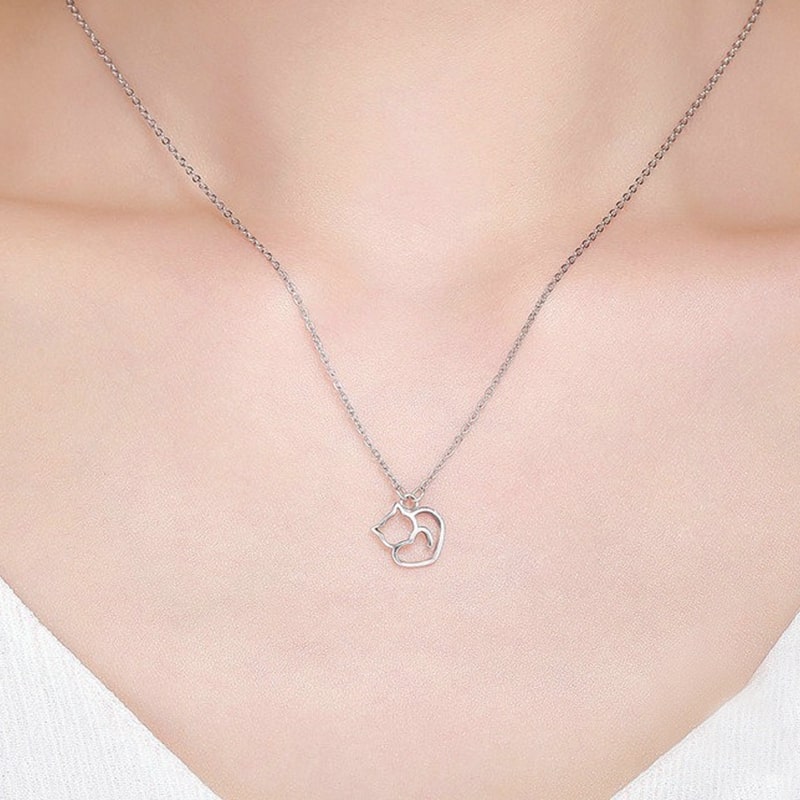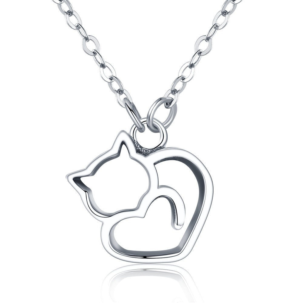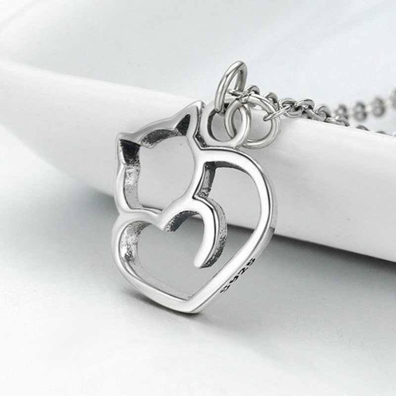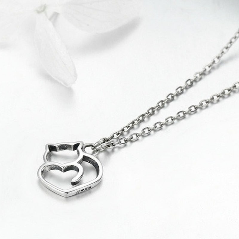 Este é um lindo colar de gato em prata 925, com um trabalho aberto cheio de delicadeza e ternura, que apresentamos hoje. É fácil imaginar o animal sentado sobre as quatro patas. Talvez já tenha reparado que a cauda enrolada sobre si mesma forma um belo coração! De qualidade encantadora, o pendente é fornecido com a sua corrente de 45 cm sem custos adicionais, também em prata.
