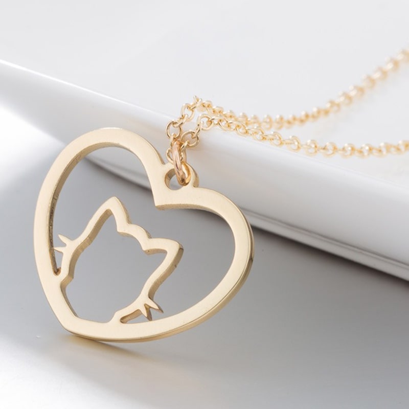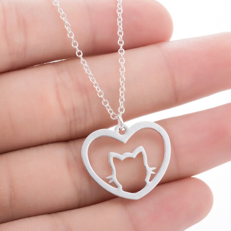 Este é um colar adorável de gato para mulheres. Este colar com coração aberto em aço inoxidável simboliza os sentimentos que tens por gatos – e provavelmente também pelo teu próprio gatinho em casa. É uma peça clássica de bijuteria que mulheres e raparigas adoram!