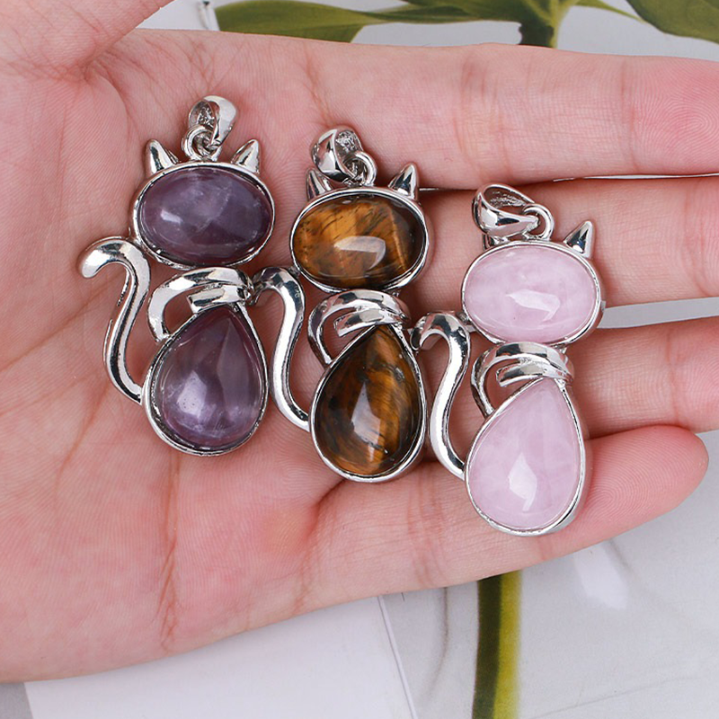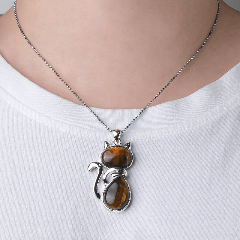 Este bonito colar com pingente de gato está disponível com várias pedras preciosas naturais. Vai apreciar a combinação de prata e pedras preciosas, que oferece um resultado elegante para o uso diário.