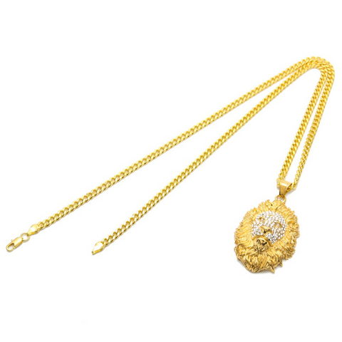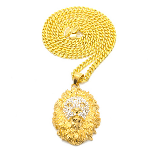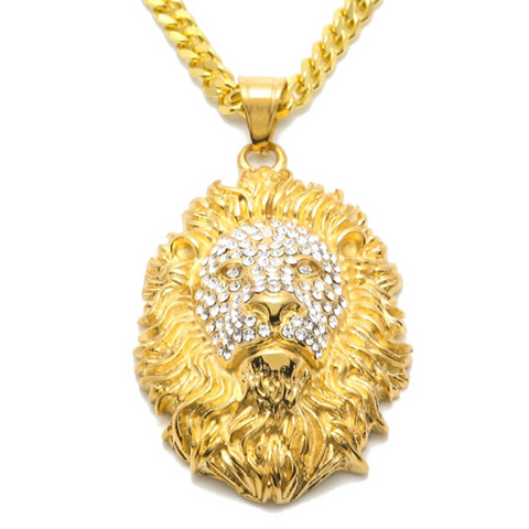 Provavelmente o modelo mais bonito da nossa coleção leão de prestígio. Este pendente vai certamente encantar todos os admiradores dos veados com juba dourada. Um elegante pendente em forma de cabeça de leão feito de aço dourado, com uma corrente em estilo corda que confere um toque único. Uma joia para homens e mulheres com personalidade.