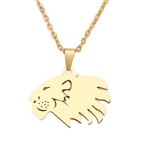 Colar Prestigious Primitive Lion com perfil de leão e expressão determinada. Colar unissexo em aço inoxidável dourado para um uso fácil no dia a dia. A corrente de elos elegante garante conforto e qualidade.