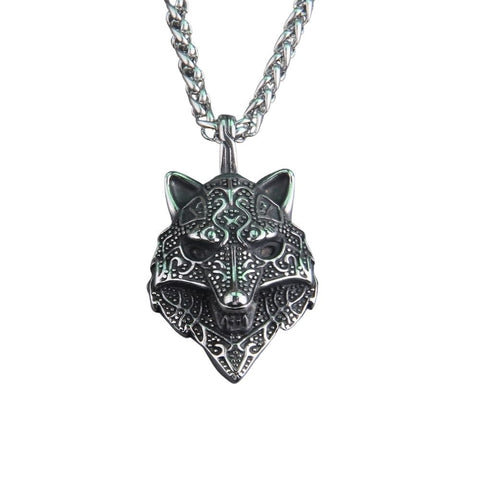 Este pendente em forma de cabeça de lobo está coberto com padrões artísticos celtas. O conjunto inclui o pendente representando a cabeça deste animal sagrado e uma corrente robusta de aço. Este colar é um acessório de moda original que permite expressar a sua atração pela antiga tradição celta.