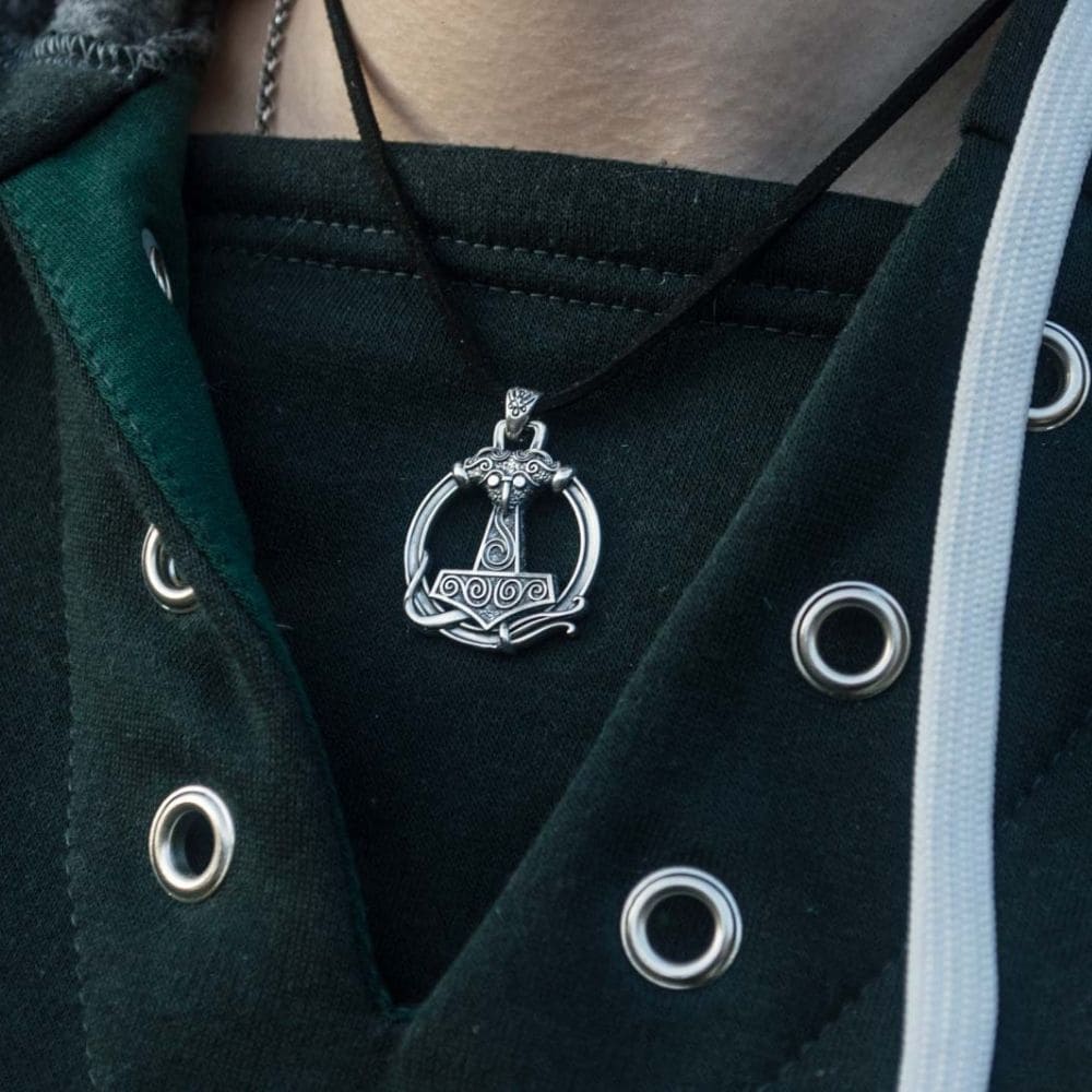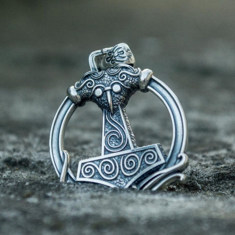Este colar de prata apresenta o famoso martelo de Thor. O martelo de Thor era um poderoso símbolo de proteção. Em escavações arqueológicas, foram encontrados numerosos pingentes com o martelo do trovão.