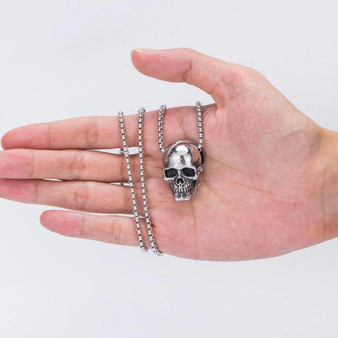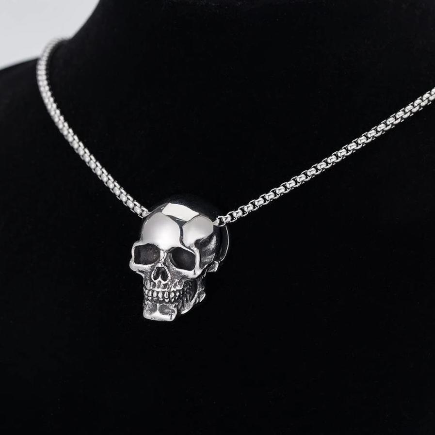 Tens um espírito rebelde e queres mostrá-lo ao mundo? Então este colar de caveira em aço é feito para ti!