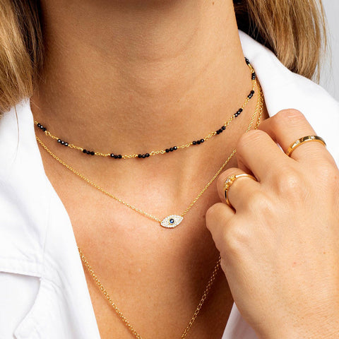 Mime-se com este deslumbrante colar com olho-de-gato para dar um toque especial ao seu visual. Está disponível em ouro de 14 quilates ou prata 925 na BelaModa.