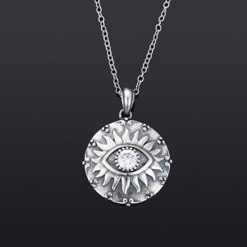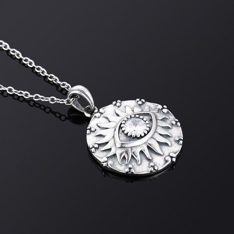 Aproveite dois estilos em um com este colar. O design de olho e sol foi combinado para criar este colar fino e elegante, o Colar Olho do Sol.