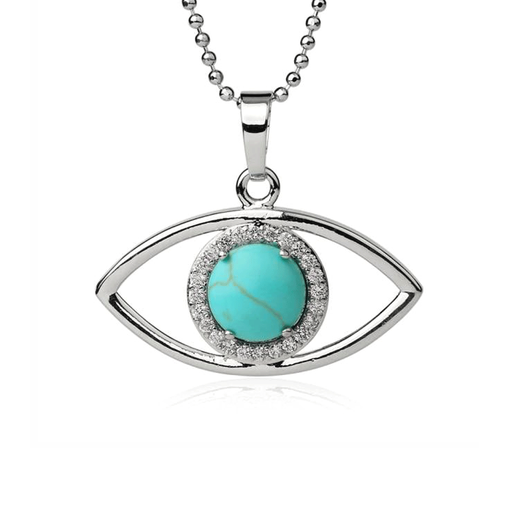 Este colar com olho turquesa funciona como um amuleto protetor.