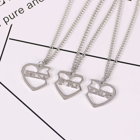 Conjunto de três colares combinados que formam a frase "Best Friends" (Melhores Amigas) quando unidos. Um presente absolutamente perfeito para mostrar com orgulho a amizade que vos une! Disponível em dourado ou prateado. Fabricado em aço inoxidável para resistir ao tempo e ao uso.