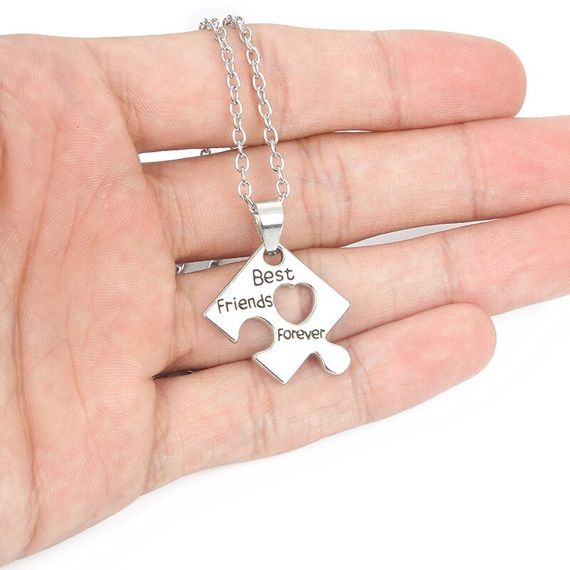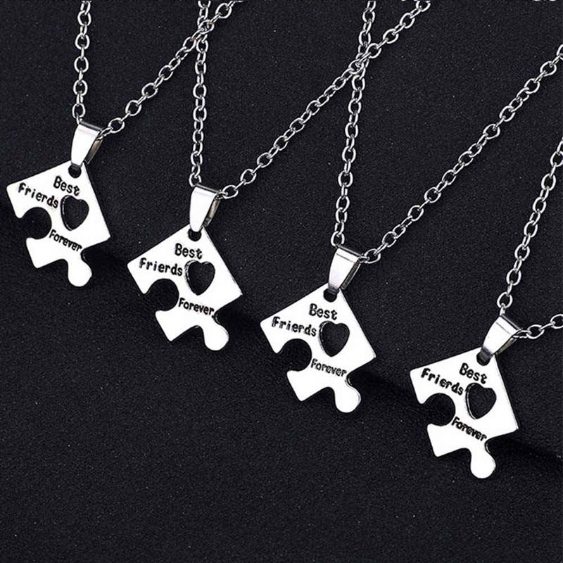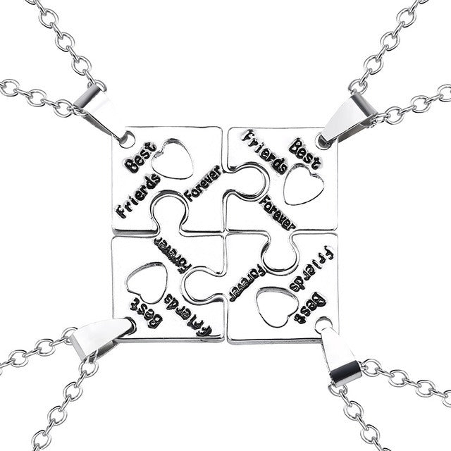 Complete o quebra-cabeça da amizade com este conjunto de colares, pensado para 4 amigas que partilham tudo. Cada pendente tem a gravação "Best Friends Forever". Corrente grossa e resistente.