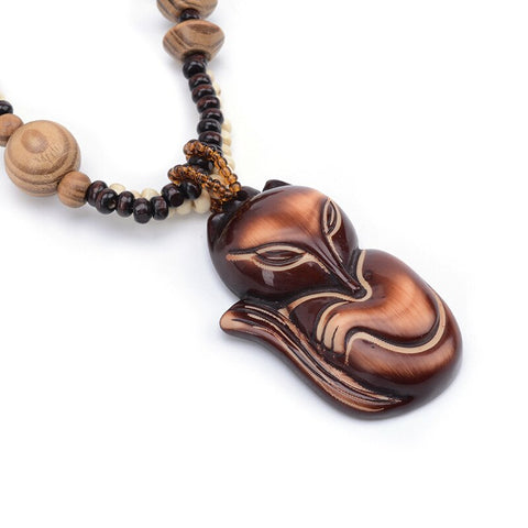 Colar de raposa feito de madeira natural! Perfeito para amantes da natureza e admiradores deste magnífico animal!