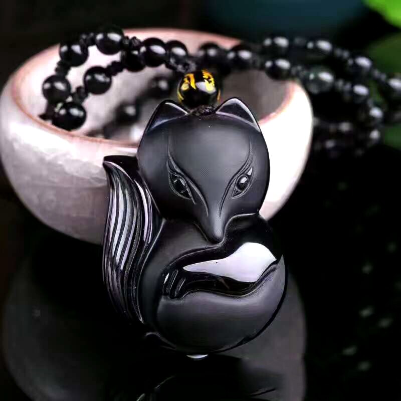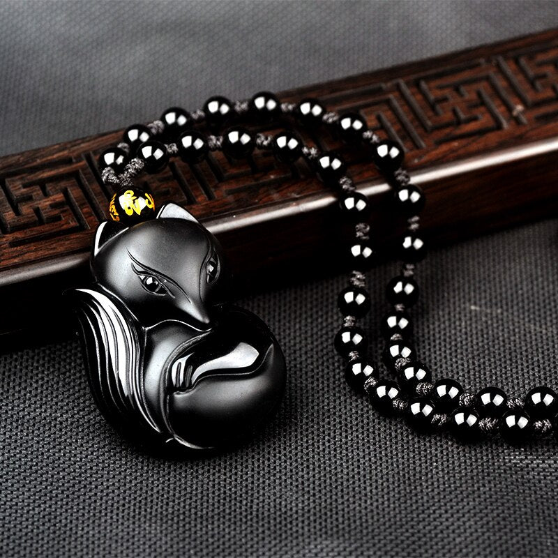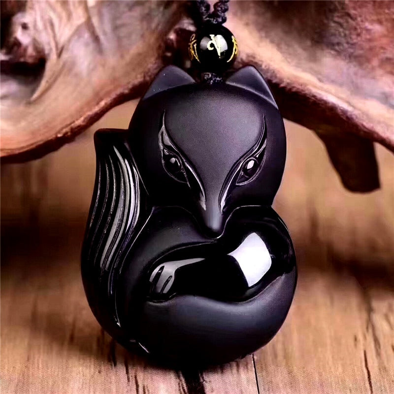 À procura de um colar de obsidiana? Então este colar preto com pendente de raposa em obsidiana é para si!
