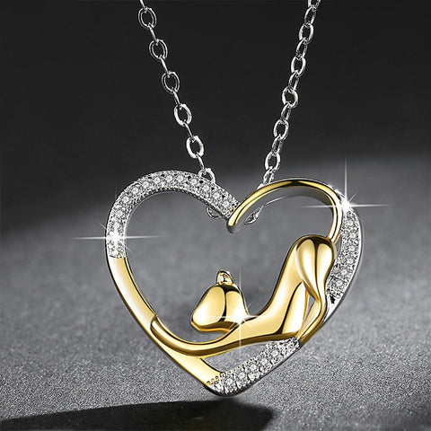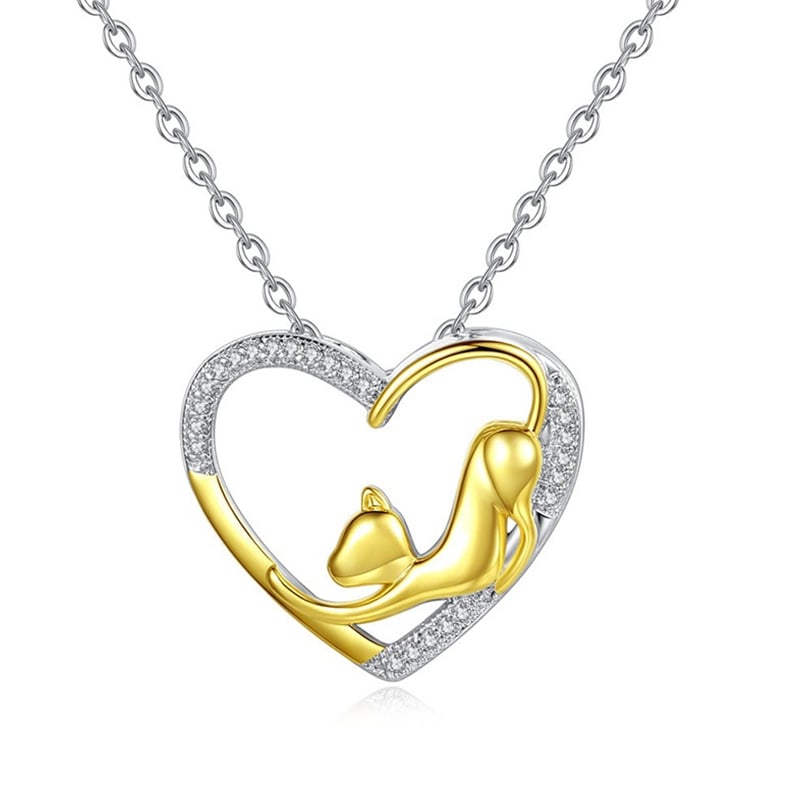 É provavelmente uma daquelas muitas mulheres que adoram gatos? Usar este colar romântico com pendente de gato demonstra, sem dúvida, o seu amor por estes felinos! Um gato esguio e elegante desperta da sua sesta e espreguiça-se antes de ir dar um pequeno passeio até à sua tigela. É dourado e está rodeado por um belo coração adornado com delicados cristais brancos. Este encantador colar de gato é original e elegante.