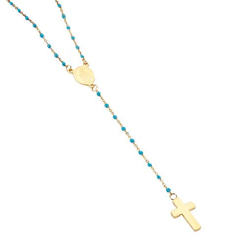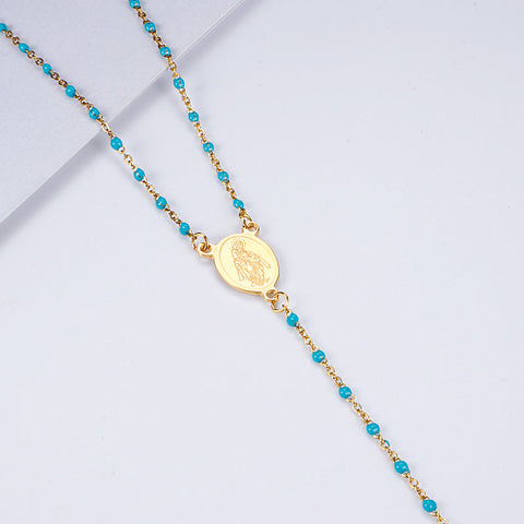 Com este belo colar com terço, pode rezar o rosário, mas também usá-lo como acessório com roupas que combinam bem com colares longos. Disponível em várias cores, tanto em prata como em dourado, temos a certeza de que vai adorar esta joia. É adornado com a medalha milagrosa da Virgem Maria e também inclui a cruz de Cristo, um clássico do rosário.