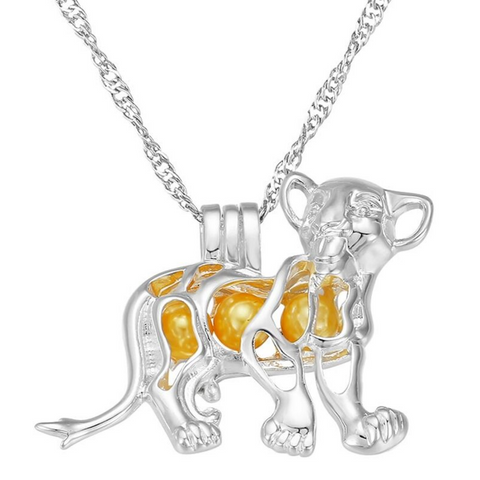 Belo colar com pendente do Simba em aço — para acompanhar o mais louco Rei Leão na jornada da sua vida. Colar com pendente em forma de coração e pérola, um detalhe encantador para mulheres.