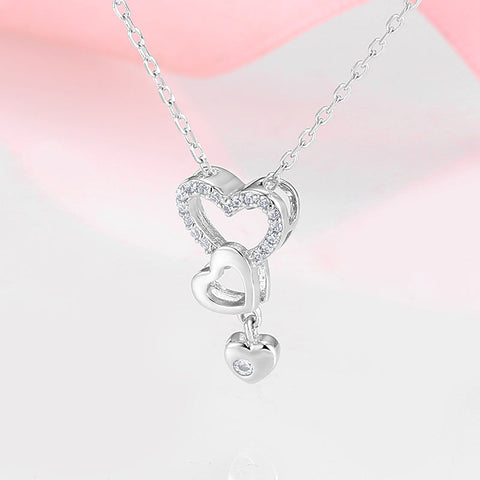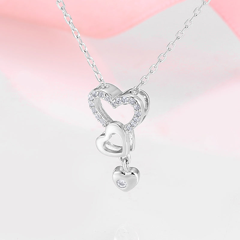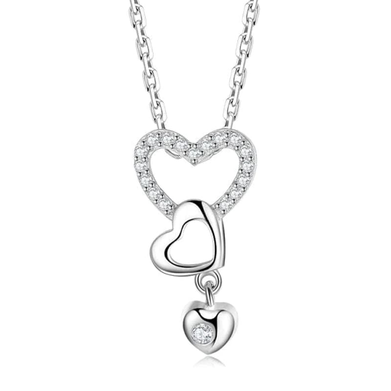 Realce o seu visual com este belo colar triplo com corações. O colar apresenta vários pingentes em forma de coração, feitos em prata maciça.