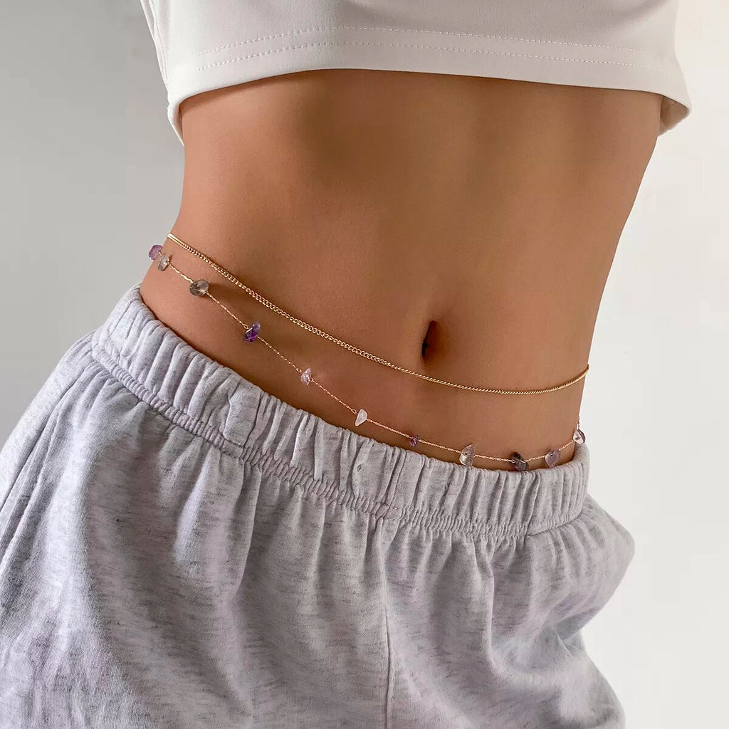 Corrente cintura elegante com pedras preciosas multicoloridas