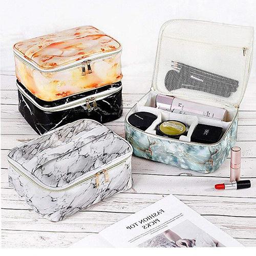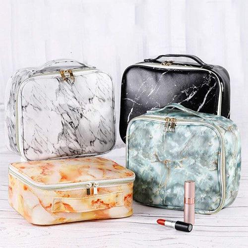 Como o nome sugere, esta mala ou nécessaire feminina apresenta um padrão de mármore disponível em várias cores. Tem uma grande capacidade de armazenamento para produtos e acessórios de maquilhagem femininos. Além disso, o design interno permite organizar os artigos de maquilhagem como uma verdadeira maquilhadora profissional. Seja batom, pincéis de maquilhagem ou outros acessórios, esta mala é um verdadeiro tudo-em-um que consegue conter absolutamente tudo. Existem dois estilos principais para este estojo de maquilhagem.