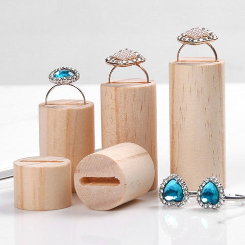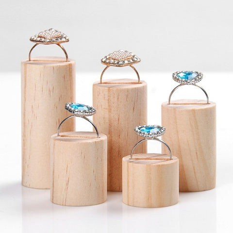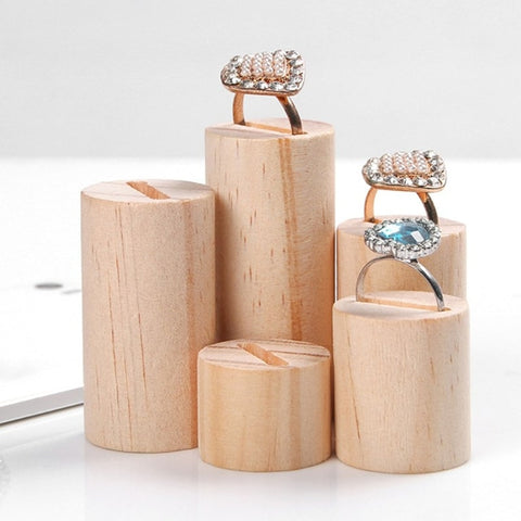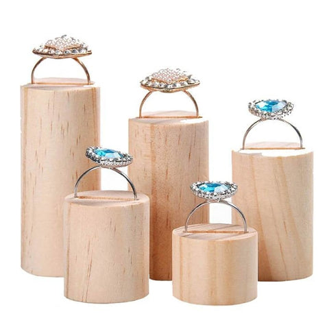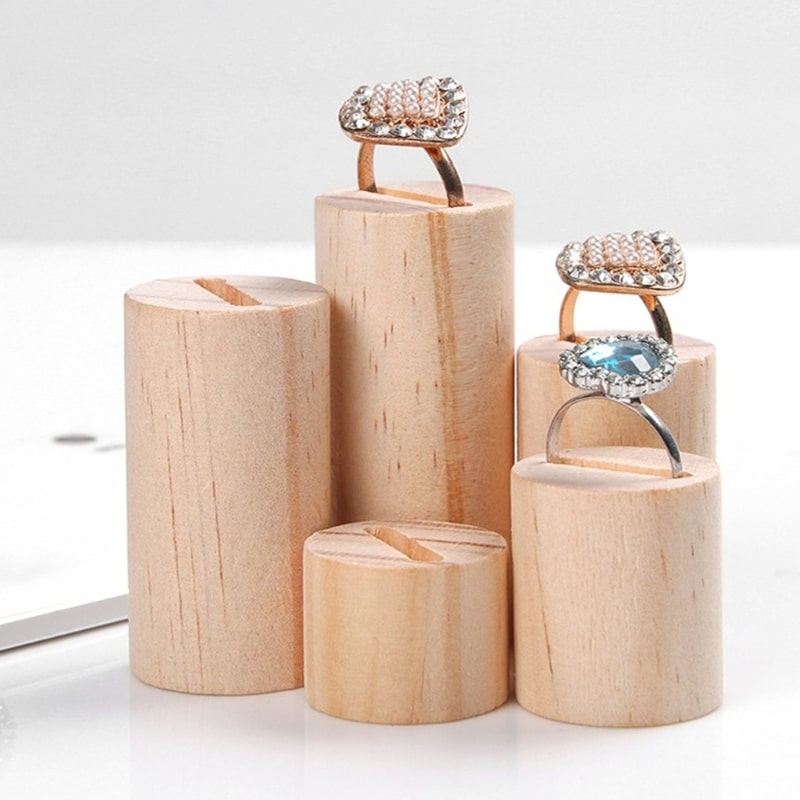 Bonito expositor de anéis em madeira, conjunto de 5 peças individuais.