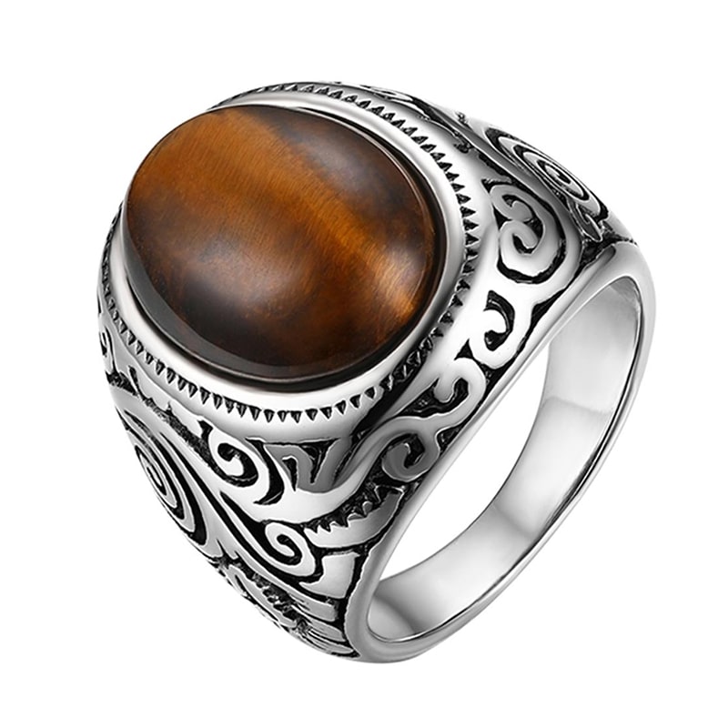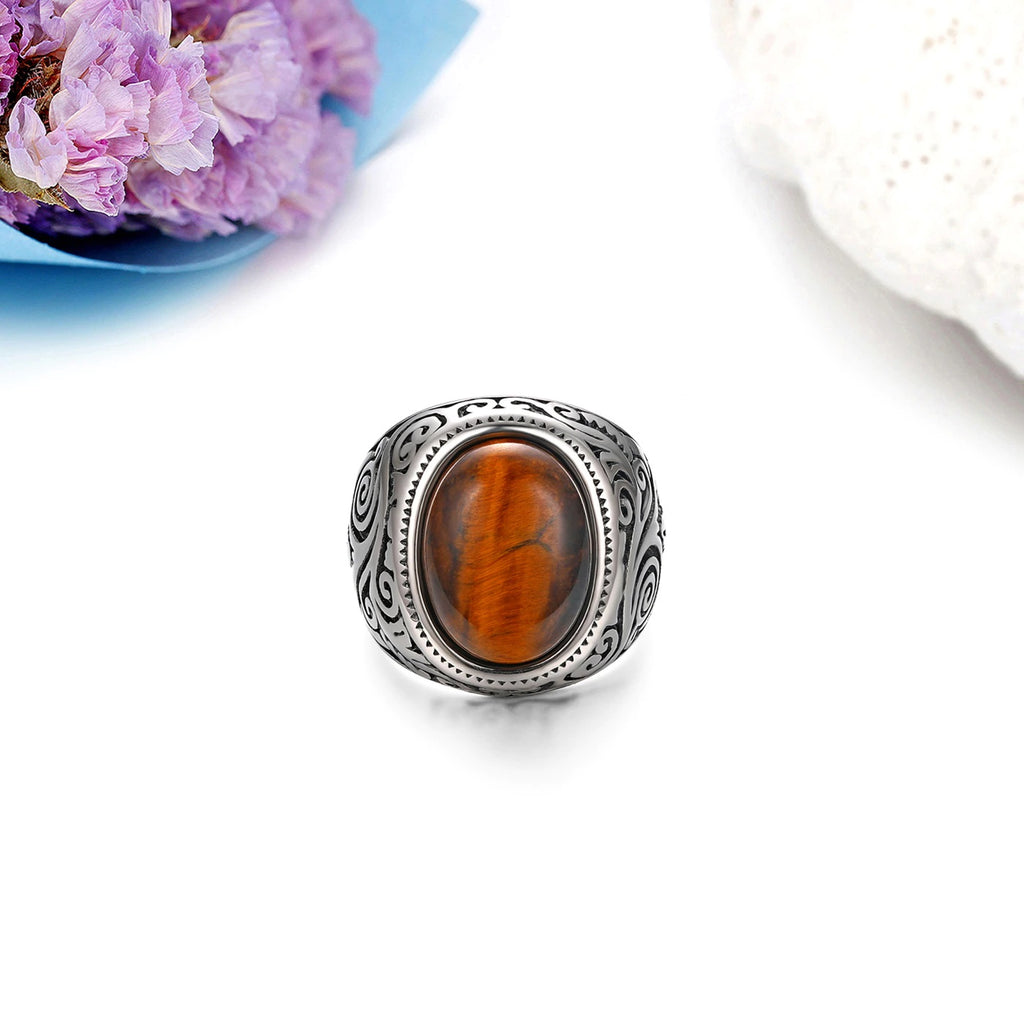 Este grande anel com pedra olho de tigre ajuda-o a desenvolver o seu estilo. Esta pedra semi-preciosa possui muitas qualidades que o ajudam a ser uma pessoa confiante.
