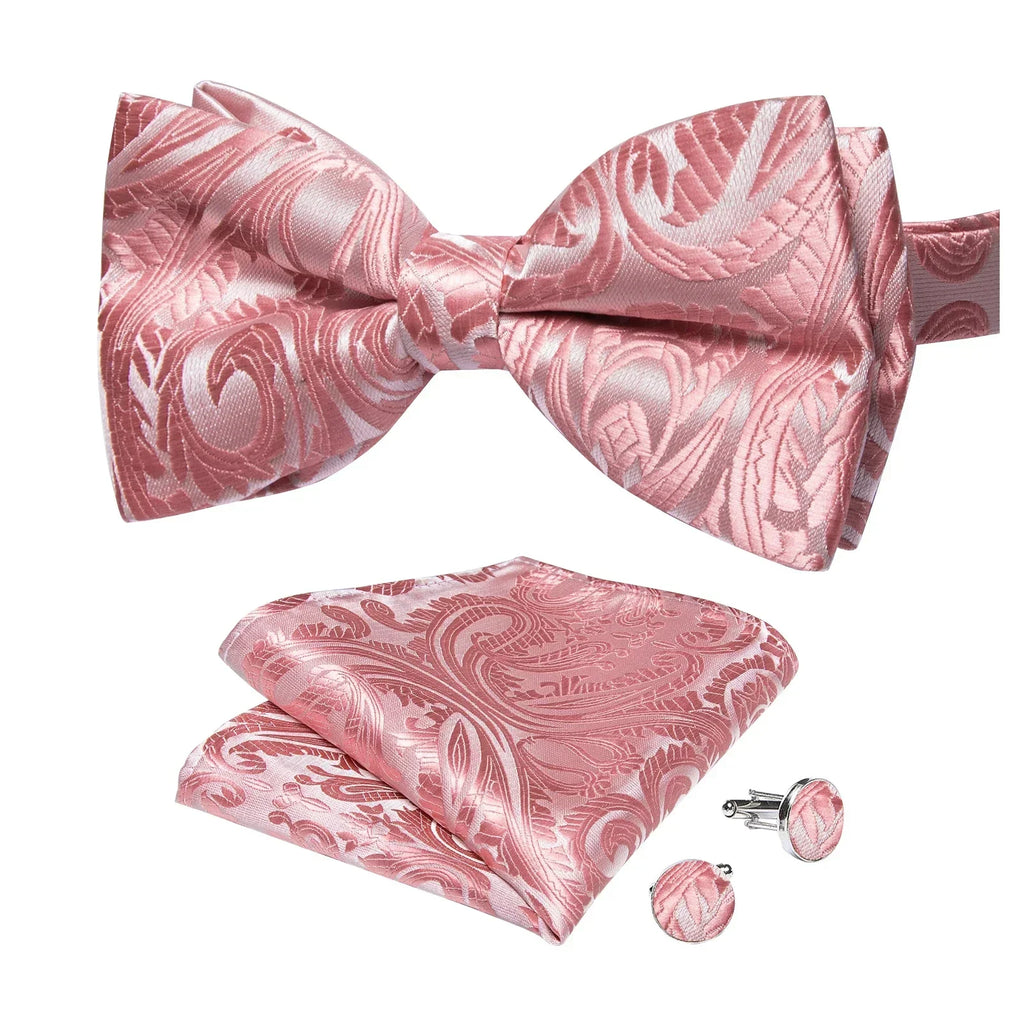 Esta gravata borboleta rosa expressa uma elegância subtil e sofisticação refinada. O delicado padrão paisley e o tom rosa claro conferem um toque distinto a qualquer conjunto. Fabricado com materiais de alta qualidade, este acessório oferece o máximo conforto e reflete um estilo intemporal.