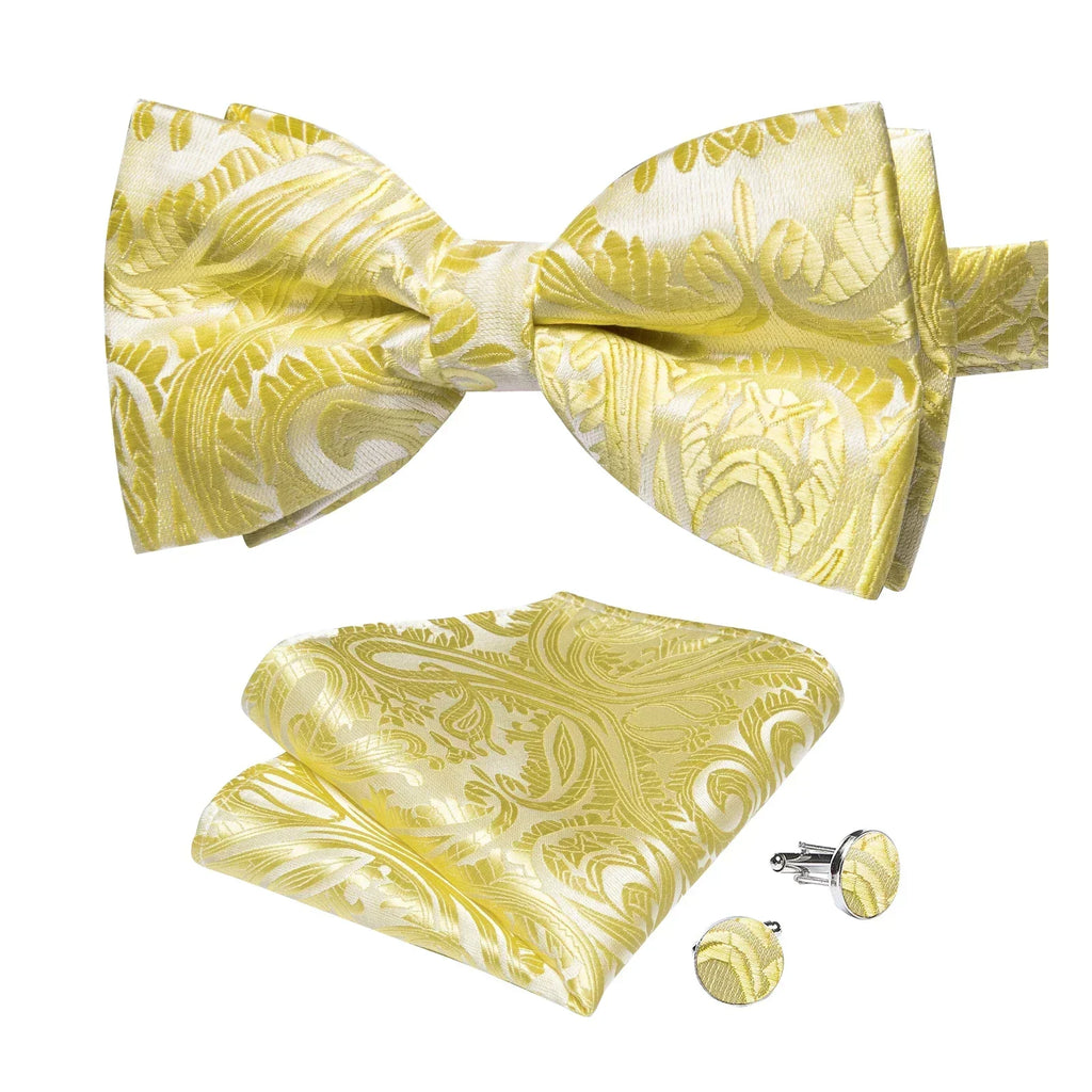 Deixe-se seduzir por este laço amarelo-claro. É um acessório versátil que eleva instantaneamente o seu visual. Esta gravata-borboleta é perfeita para ocasiões especiais ou simplesmente para adicionar um toque de sofisticação ao seu look do dia a dia, pois é uma escolha ousada e elegante.