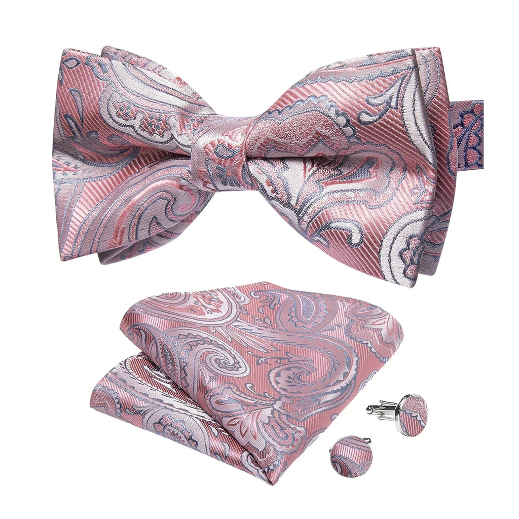 Mima-se com um toque de sofisticação com esta gravata borboleta rosa com padrão paisley. Fabricado com materiais de alta qualidade e adornado com um elegante padrão paisley, este acessório é a escolha perfeita para complementar o seu visual. Seja para um casamento, uma ocasião especial ou um dia no escritório, esta gravata borboleta adicionará um toque de cor e estilo ao seu traje.