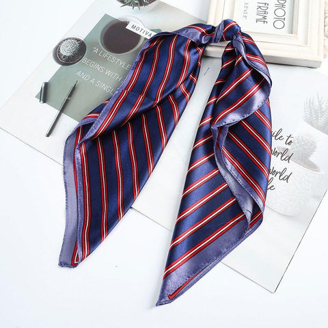 Lenço de cabelo prático com acabamento acetinado e finas riscas em azul meia-noite e borgonha. Elegante tanto no material como no padrão, este lenço está disponível em cores discretas e adiciona um toque de estilo ao seu penteado com apenas algumas linhas elegantes.