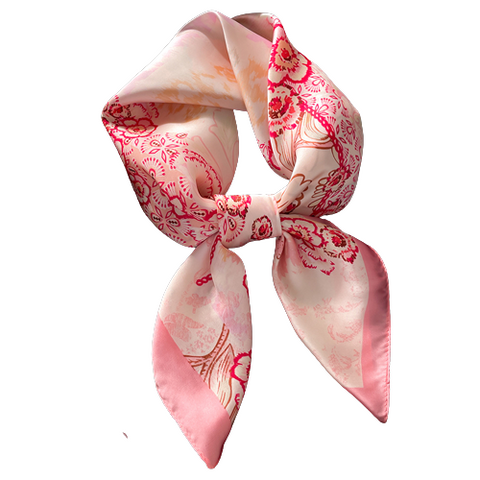 Descubra a delicadeza deste lenço rosa para cabelo, com um toque perfeito de estilo vintage. Este acessório é adornado com um padrão floral que combina flores rosa e brancas, trazendo uma suavidade primaveril ao seu visual.