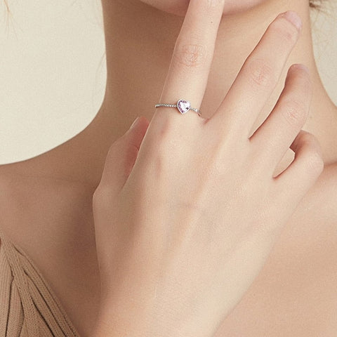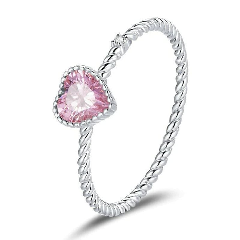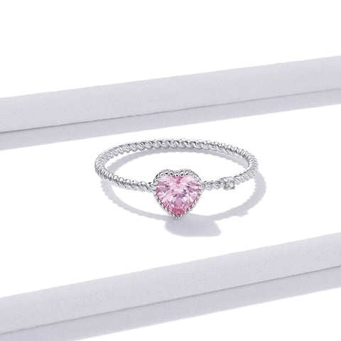 Este anel com coração cor-de-rosa é uma joia simples e elegante, perfeita para expressar o seu amor. Os contornos ondulados e definidos emolduram delicadamente a bela incrustação em forma de coração cor-de-rosa. As pedras que brilham através da superfície lisa da prata capturam a luz ambiente, conferindo um toque romântico à peça.