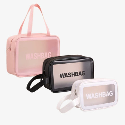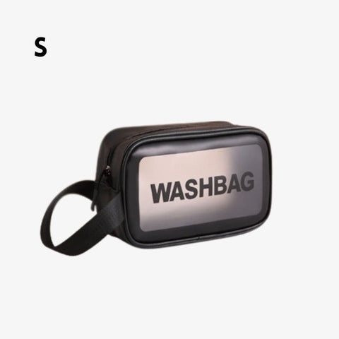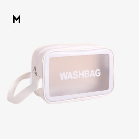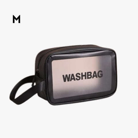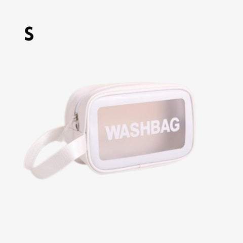 Organize os seus artigos de higiene com uma bolsa de toilette transparente.