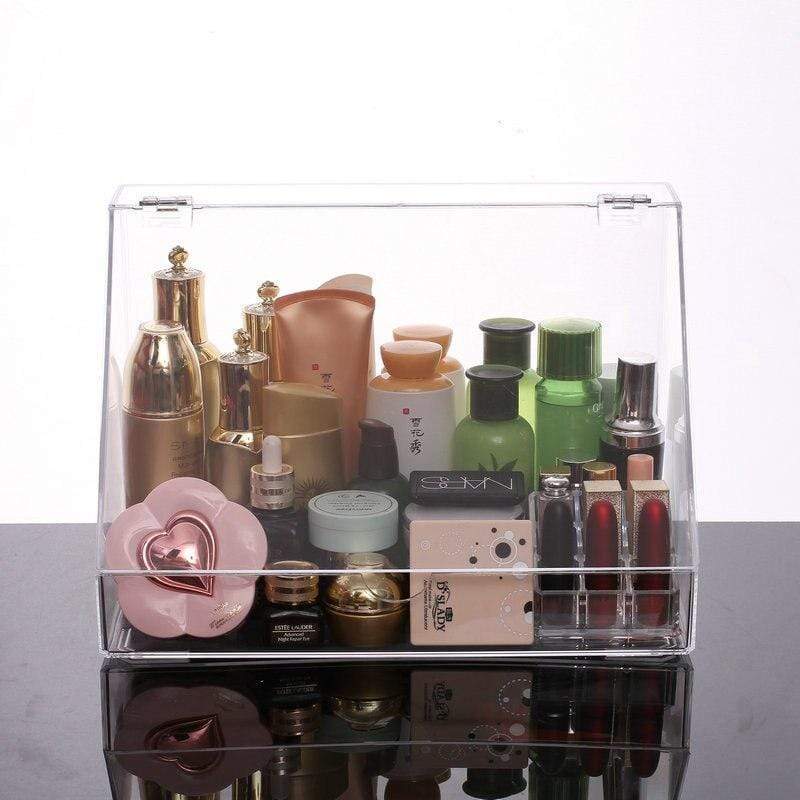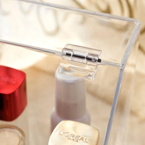 Grande caixa organizadora de maquilhagem em acrílico com tampa que protege da humidade. Permite guardar toda a sua coleção de cosméticos em segurança.